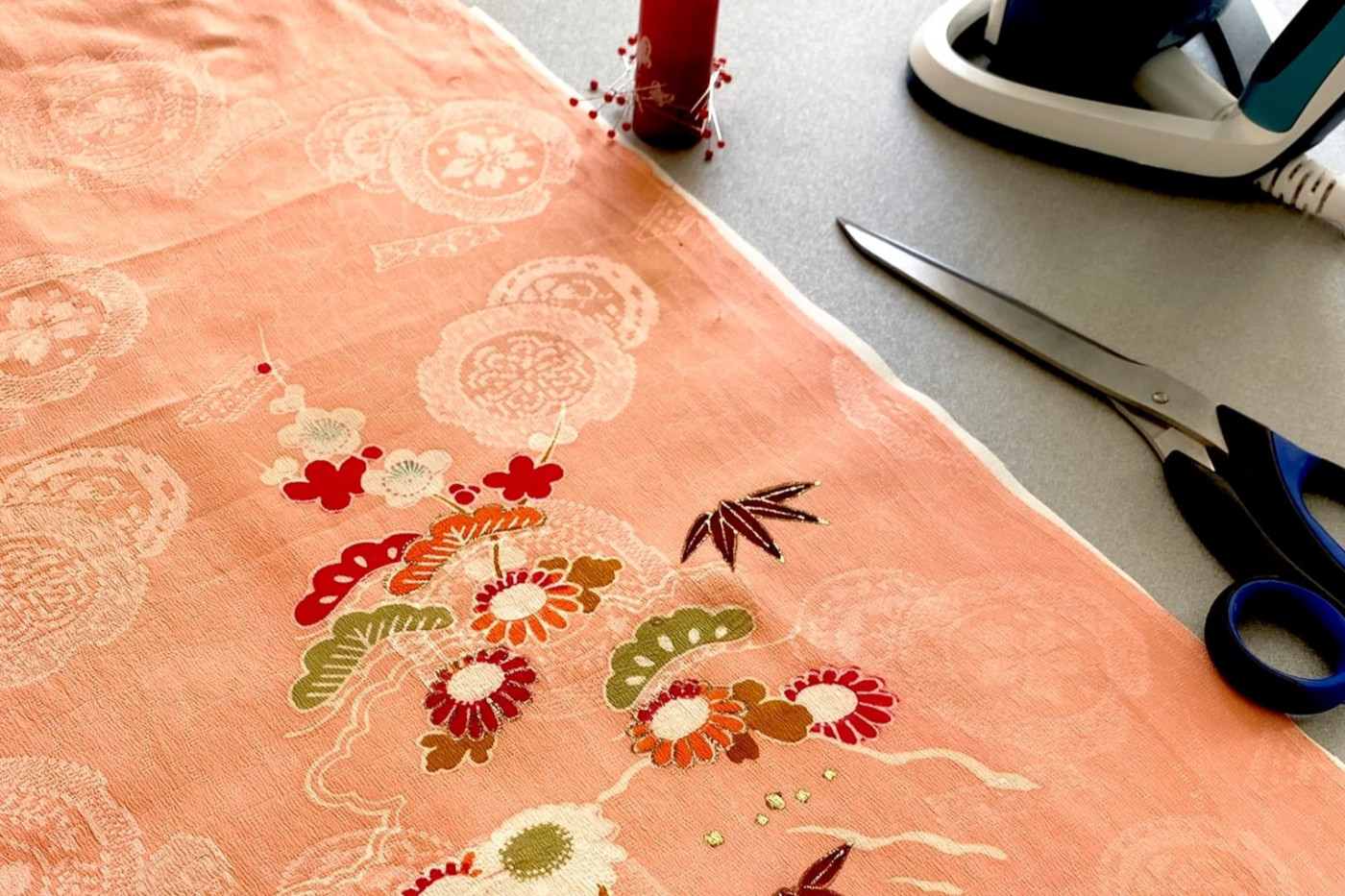 Die Kreation beginnt mit dem Betrachten der Kimonostoffe.